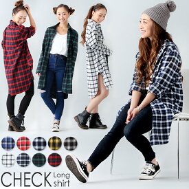 人気 あす楽対応 チェックシャツ ネルシャツ シャツ レディース チェックロングシャツ チェックシャツワンピース ロングカーディガン ワンピース ガウンシャツ チェック柄シャツ 長袖 春夏 秋冬 チェック柄 ロング丈 トップス ロングシャツ チュニック ゆったり